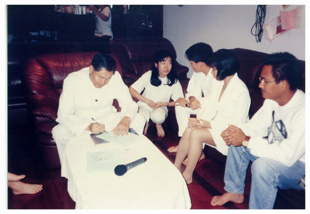 The Baitiangong Way of Marriage is the spiritual way of conducting a marriage in BUSM and not the legal way in Malaysia or Singapore, at the time of writing. Xian Sheng advised the couple to observe the country’s marriage procedures and complete the registration at the proper government office, which for Malaysia is the Registrar of Marriage (ROM) before conducting the Baitiangong Way of Marriage. If the Baitiangong brother or sister conducting the marriage is also an appointed Assistant Registrar of Marriages, then the legal registration should take precedence over the Baitiangong Way, but conducted simultaneously as was done in the past when Xian Sheng was an Assistant Registrar of Marriages.